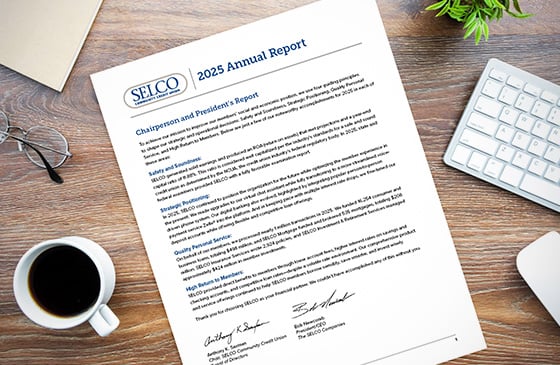 In 2025, we remained steady in our quest to improve the position of our members and communities through innovative products and expanded outreach efforts. Highlights included ramping up our SELCO Steps Up community involvement program; fully transitioning to a voice-driven phone system; and expanding on the digital conveniences that set our digital banking platform apart.